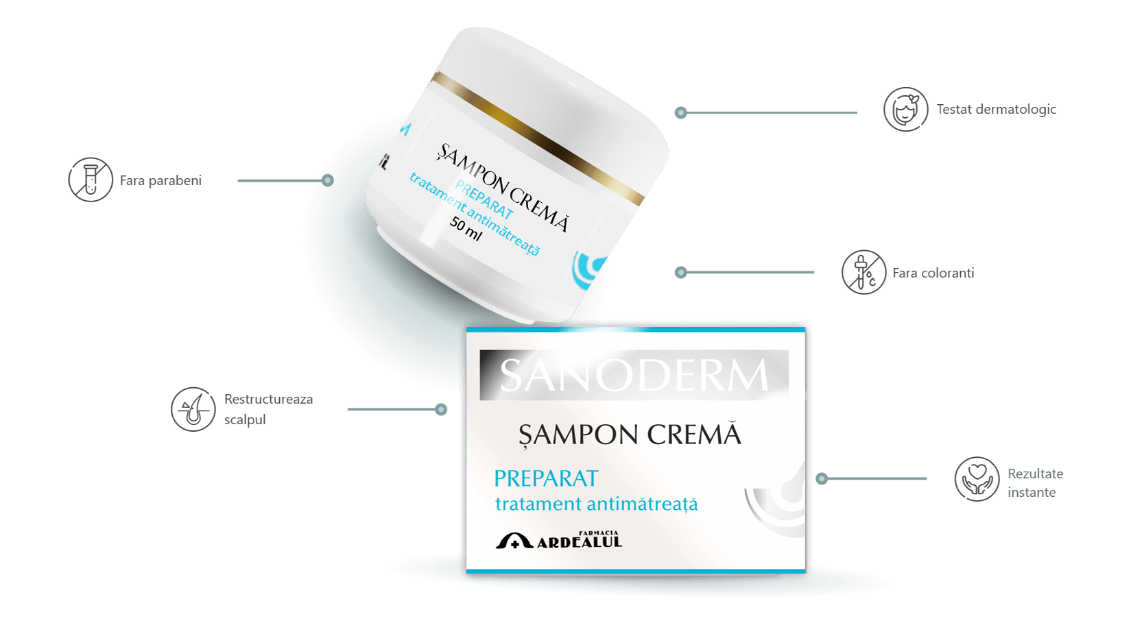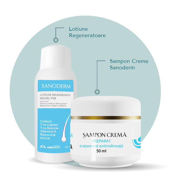 Gama Sanoderm a fost creata din angajamentul farmacistilor Ardealul fata de tratarea problemelor cu care se confrunta clientii sai la nivelul epidermei si a firului de par. Ea comprima atat intreaga expertiza farmaceutica Ardealul, cat si viziunea unitara pentru o piele si un par mai sanatos.